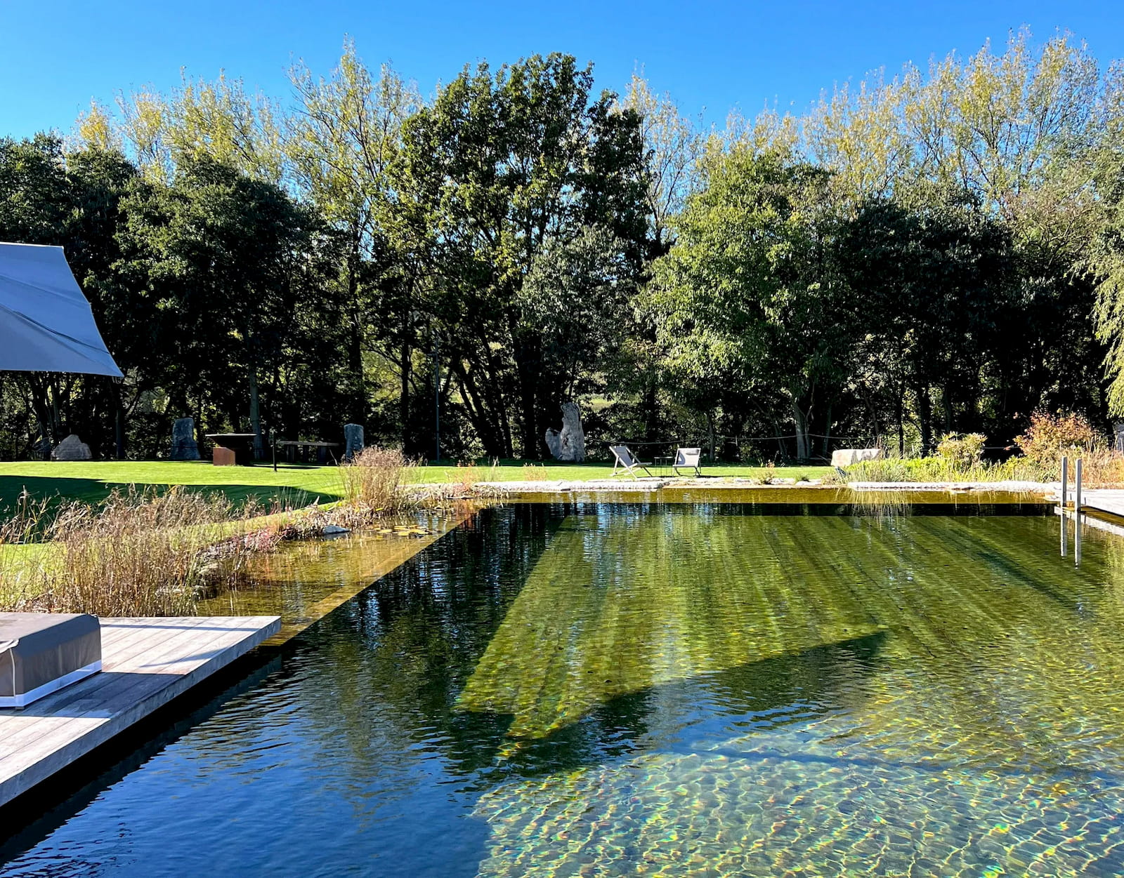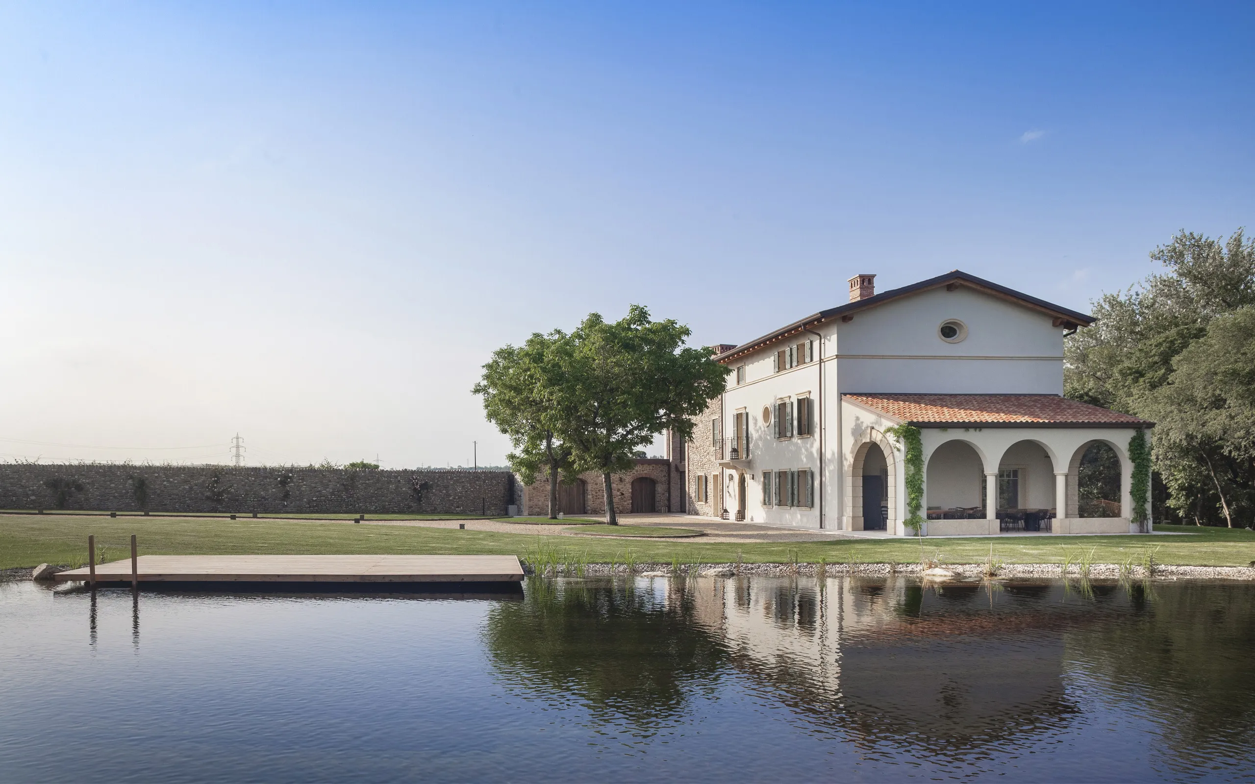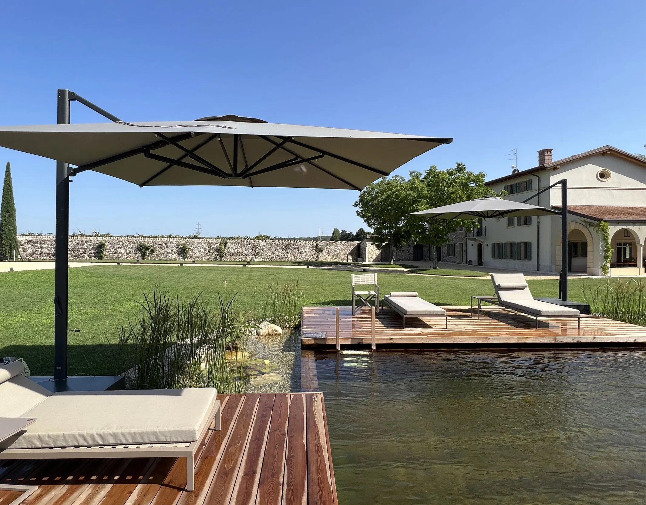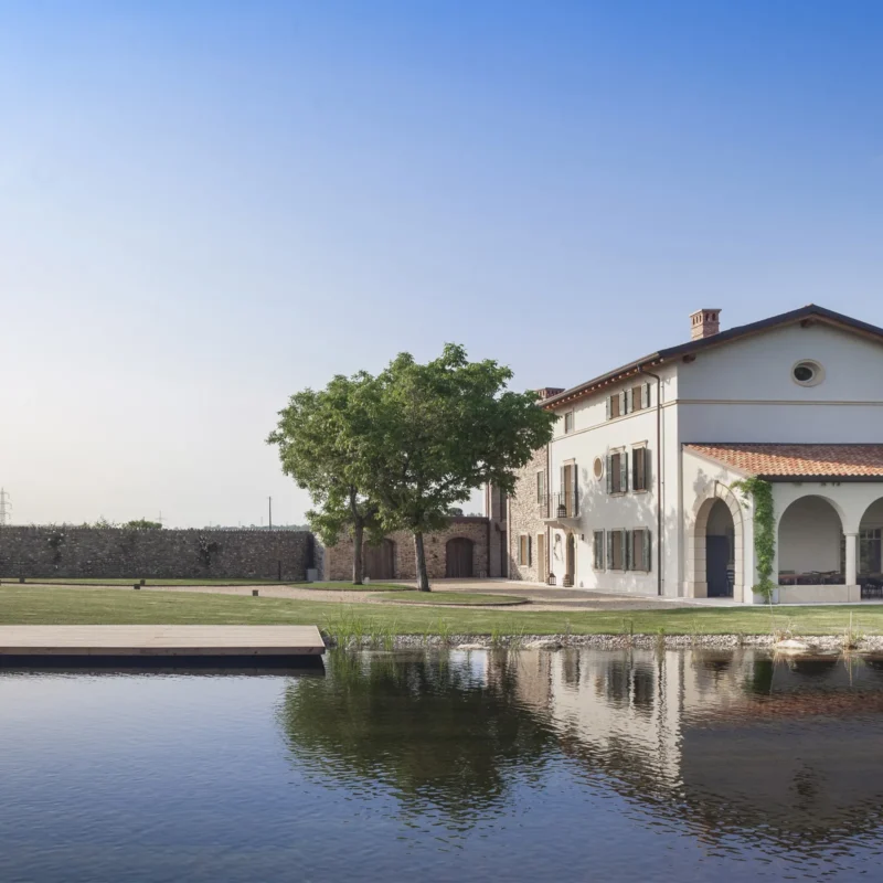 Biopiscina scenografica nella campagna veneta, pensata per il turismo di fascia alta
